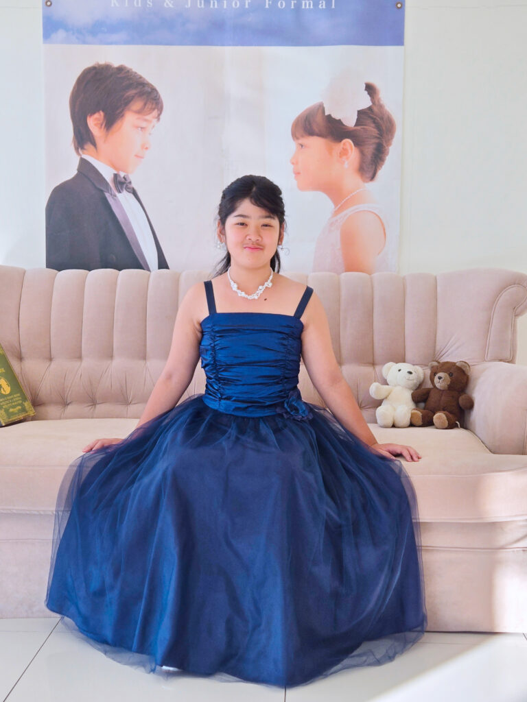 クリンクルタフタ&チュールロング子供ドレス(コルセットバック)(CDC4001)ネイビ