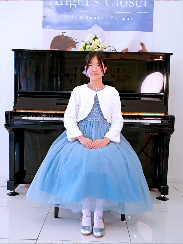 お選びの子供ドレス(https://www.angels-closet.com/)はジュニアサイズまでの豊富なサイズ展開のブルーグレーのエレガントなチュールドレス✨