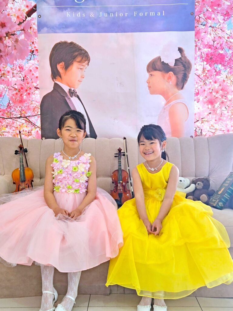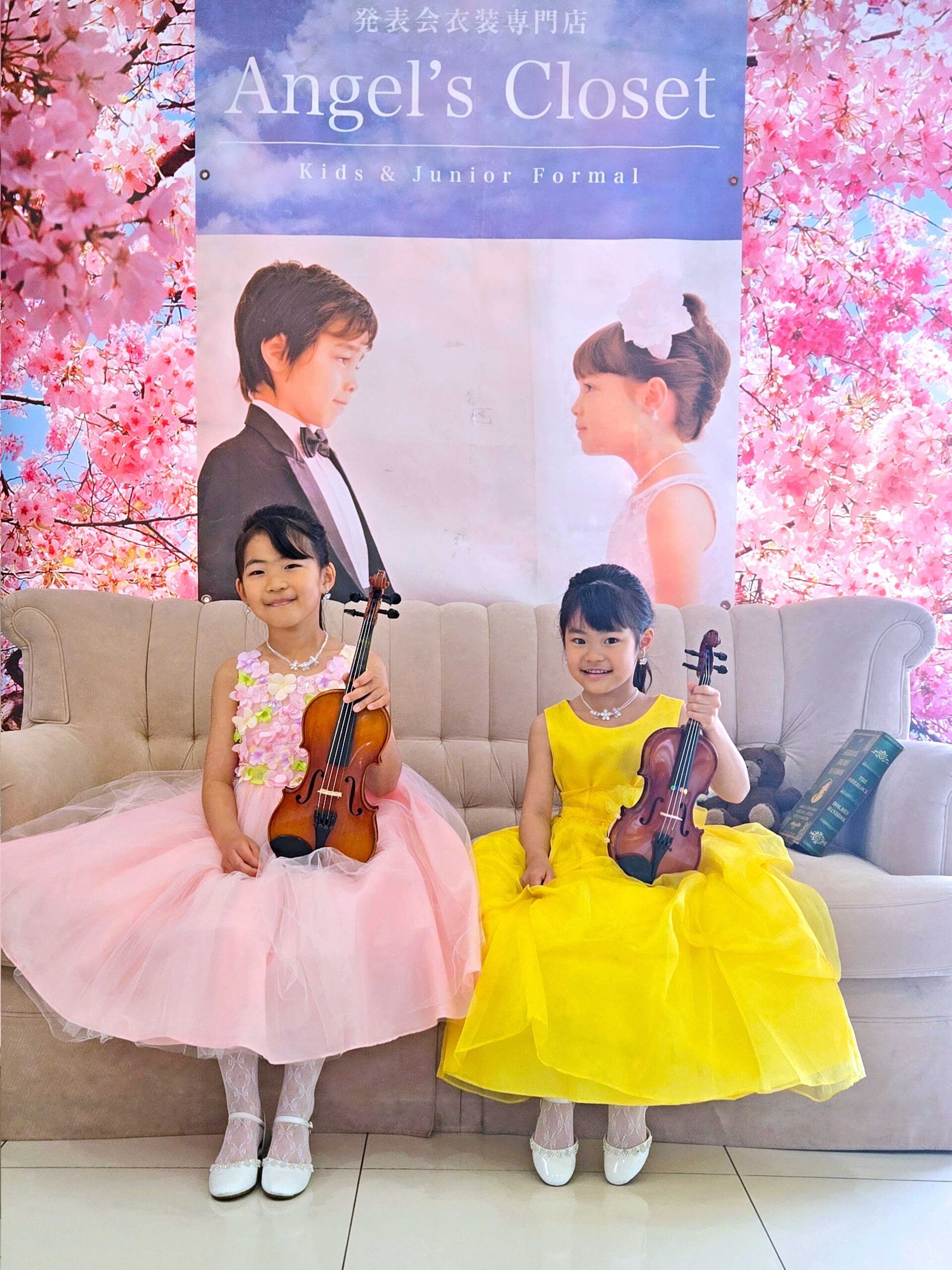 とっても可愛らしいバイオリンのご姉妹❤発表会のための子供ドレス(https://www.angels-closet.com)をお選びにご来店いただきました😊