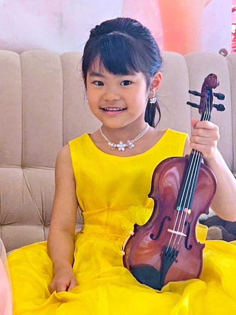 毎日しっかりと練習に励んでいるというご姉妹、ご持参のバイオリンで本番スタイルでの演奏のイメージもきちんとチェック✨
